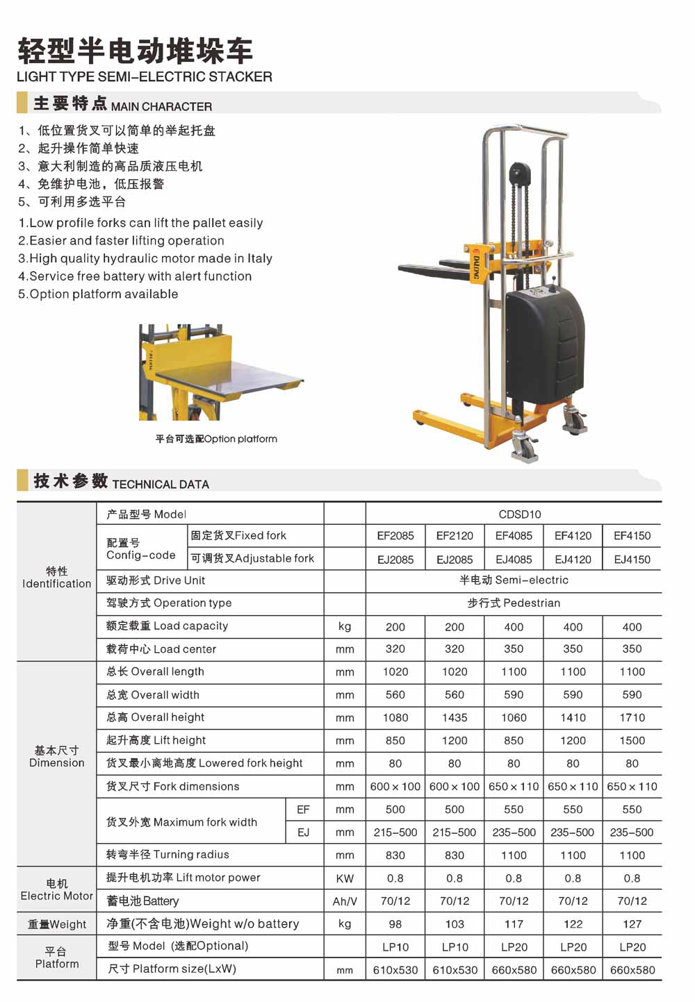 CDSDEF/EJ輕型半電動(dòng)堆垛車